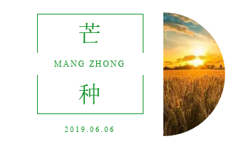 芒种是农历二十四节气中的第9个节气,夏季的第三个节气,表示仲夏时节的正式开始;太阳到达黄经75°时叫芒种节气。2019年芒种时间为6月6日07:06:18,农历五月(大)初四。
