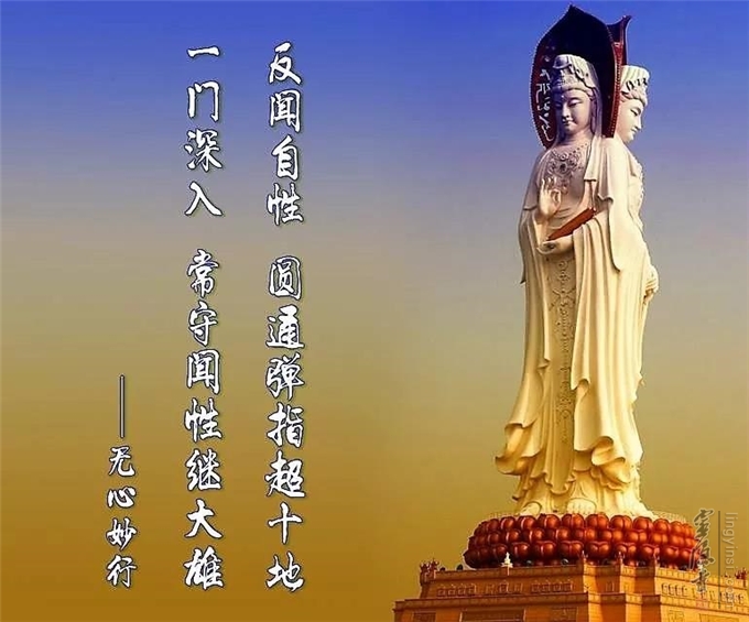 "彼佛教我从闻思修"。观世音菩萨在佛前发了菩提心,观世音古佛教授从"闻思修"三慧下手的方法。