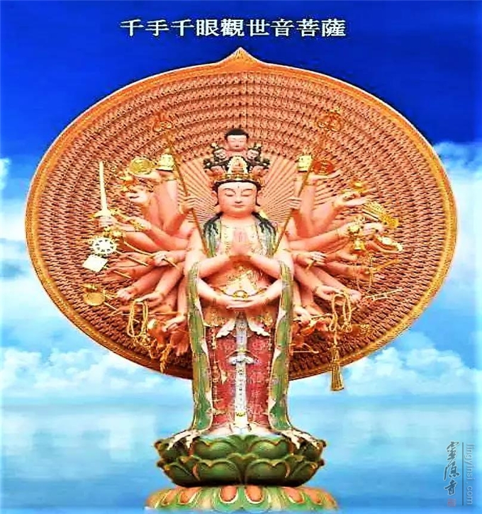 淨悟法师说:千手千眼观世音菩萨,千手:表示遍护众生;千眼:表示遍观世间。