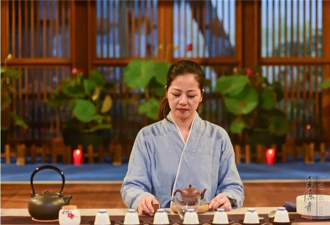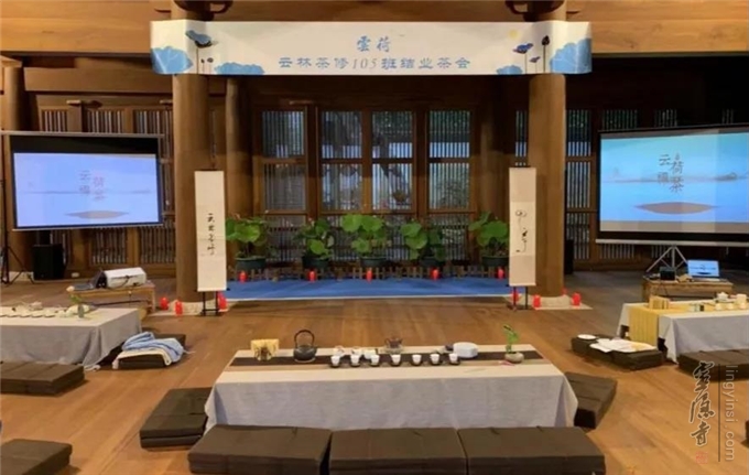 8月4日晚,云林茶修第五期初级班以"云荷"为主题的结业茶会在灵隐寺云中轩隆重举行。