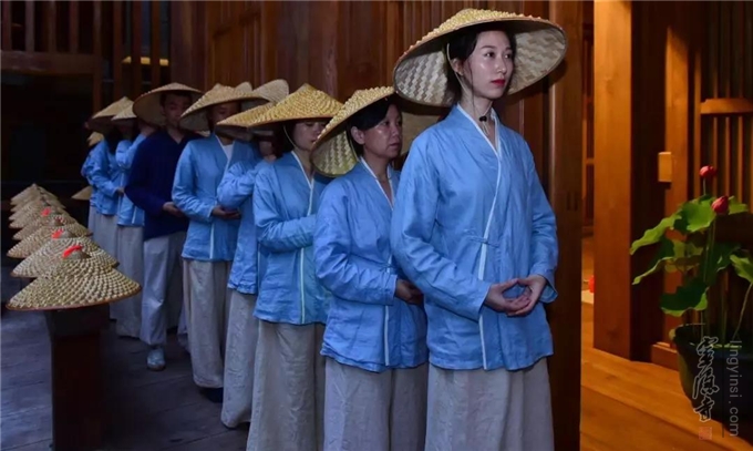 茶会现场布置精美,105顶斗笠为来宾引路,105支蜡烛点亮茶会现场,青青的荷叶、悠悠的荷香、禅意的茶席、优雅的茶人为参加此次茶会的来宾带来了一种不一般的禅茶体验。