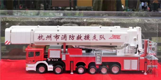 ▲杭州灵隐寺捐赠的消防登高平台车模型