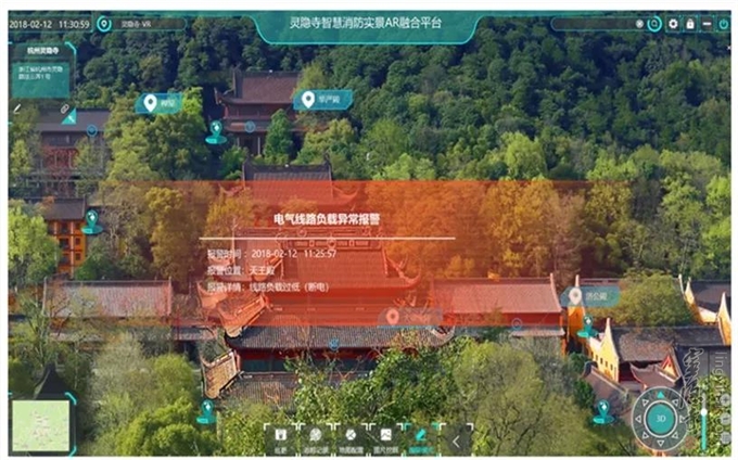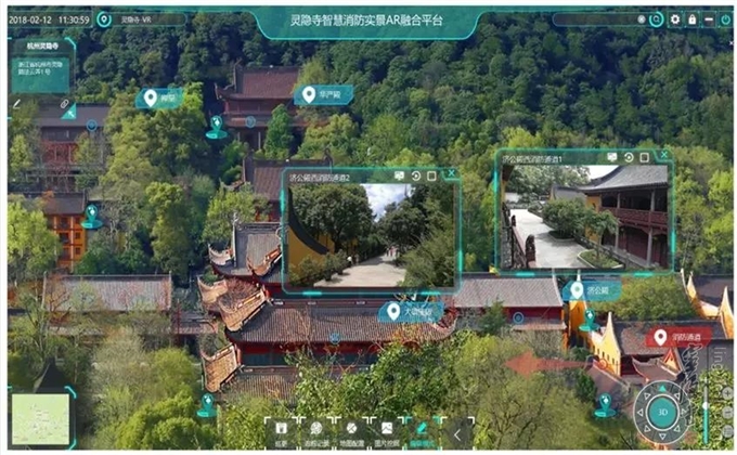 最近,杭州灵隐寺通过实景融合技术与现有消防传感模块相结合的手段,将寺院传统建筑特点与消防前沿科技相结合,逐步实现"传统消防"向"智慧消防"的转变,构建动态化、立体化、精细化的消防安全监管及风险防控体系,全面打造智慧消防寺院新格局,确保宗教文化传承渊远流传。