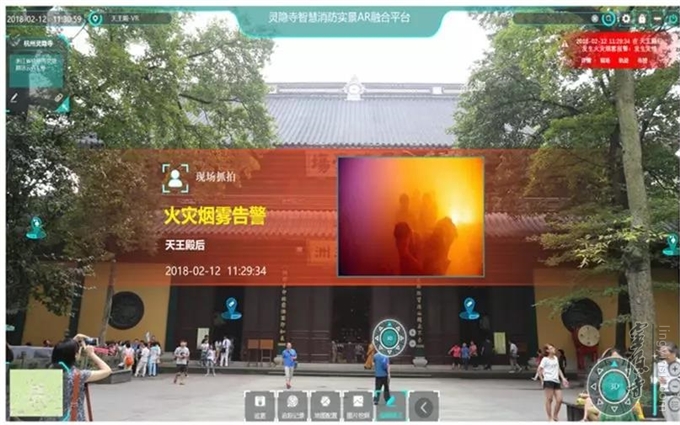 灵隐寺的这套"智慧消防"系统,对寺院内的电气、消防、水务等相关设备设施实时监测,监管消防数据、电气数据、水务数据、报警信息等核心数据,一旦发生异常报警,就会实时显示报警时间、地点、灾情情况等信息,还可自动切换至报警发生地点的现场实时画面,大大提高了火灾研判能力,为消灭初期火灾提供了方便。