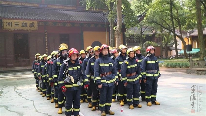 除去打造"智慧消防"系统,灵隐寺还专门成立了专职消防队还与景区消防救援大队、森林防火队、临近寺院微型消防站的志愿消防队,组成消防联勤联动机制。