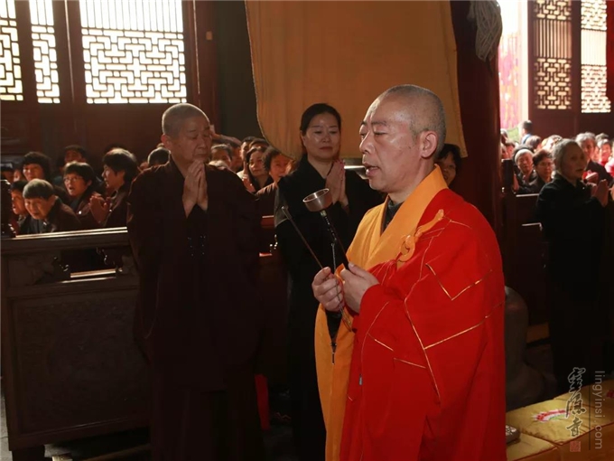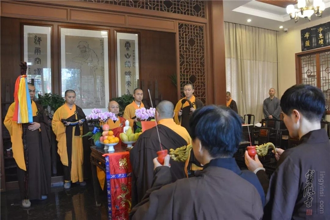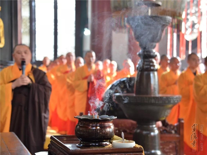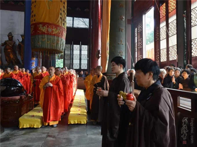 上堂大斋,供养十方三世一切诸佛菩萨,声闻缘觉贤圣僧,六道众生及诸有情。灵隐寺方丈光泉大和尚拈香主法、上堂说法、广度有情。