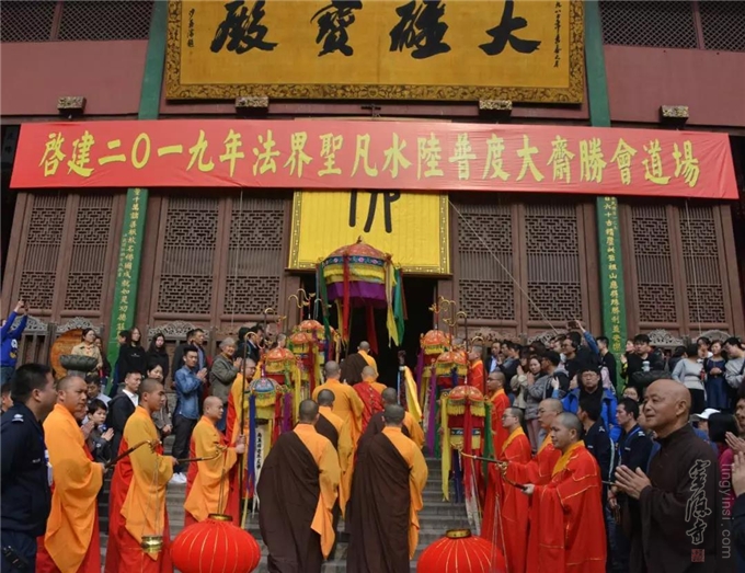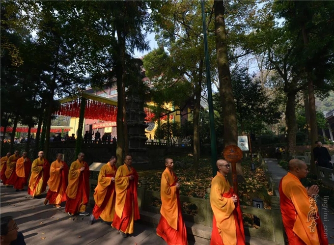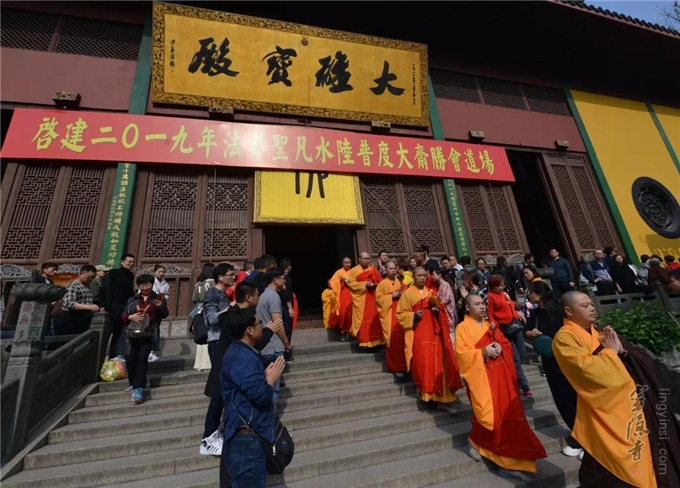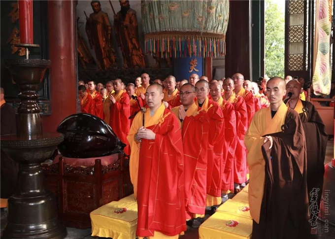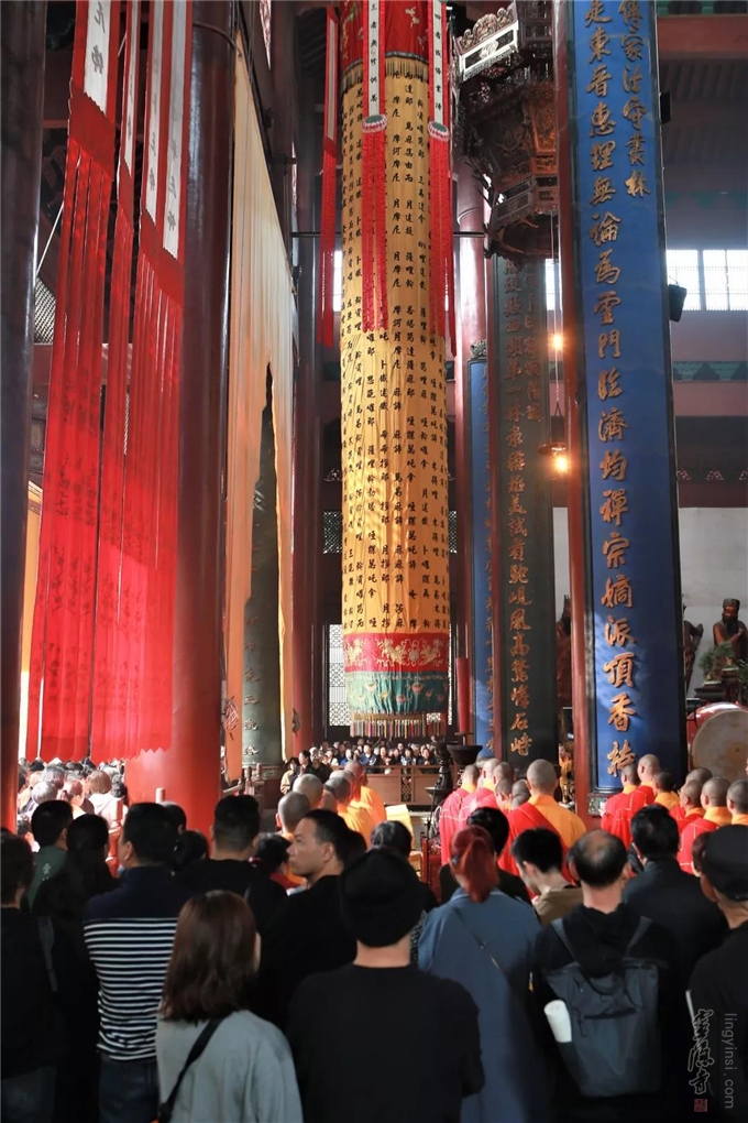 法不孤起,遇缘则生。2019年11月24日(农历十月廿八),杭州灵隐寺"己亥法界圣凡水陆普度大斋胜会"进入第五日。各坛口法事活动有条不紊,如法如律。上午十时三十分,杭州灵隐寺己亥水陆上堂大斋在大雄宝殿庄严举行。
