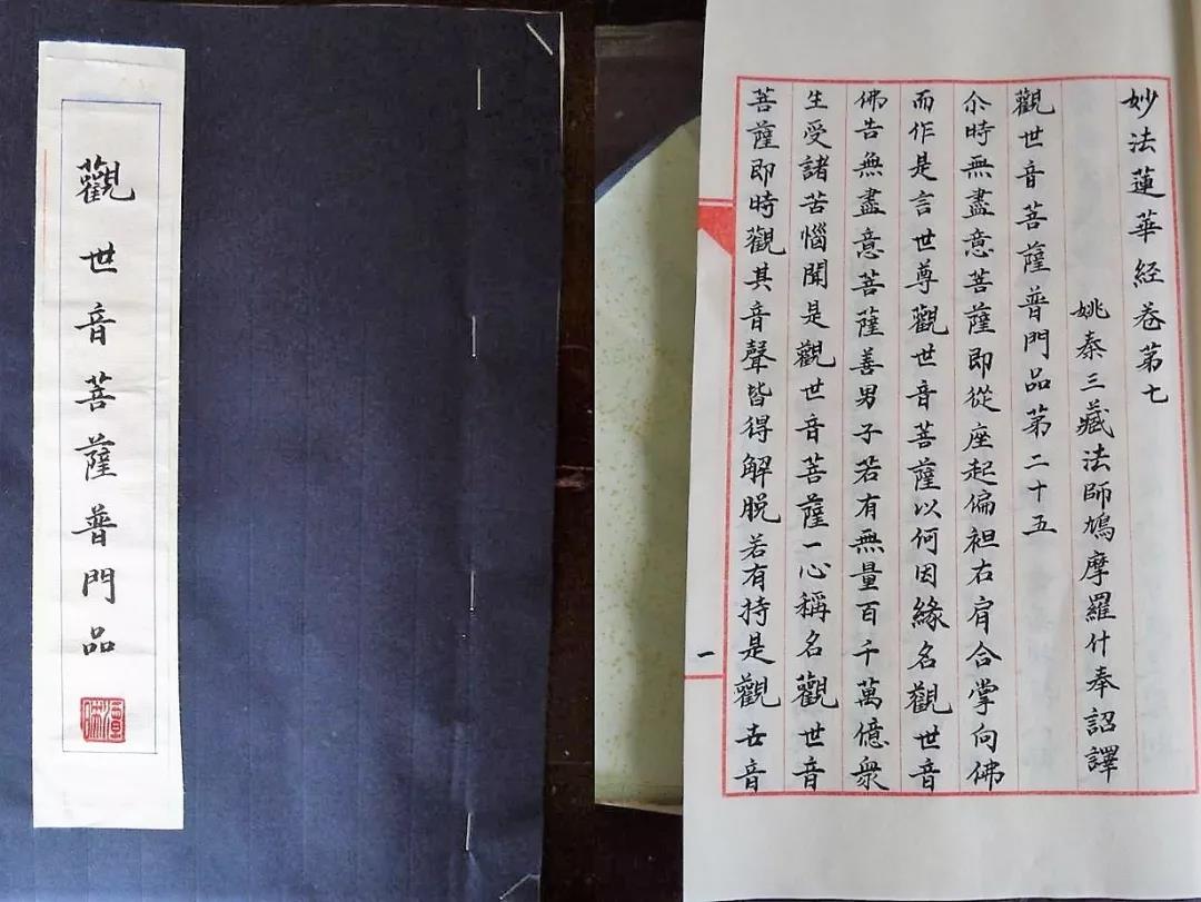 《观世音菩萨普门品》简称《普门品》,是《妙法莲华经》里的第二十五品。《妙法莲华经》是后秦鸠摩罗什翻译的一部影响十分广泛的大乘佛教经典。