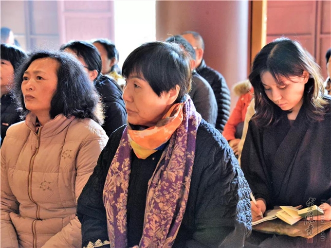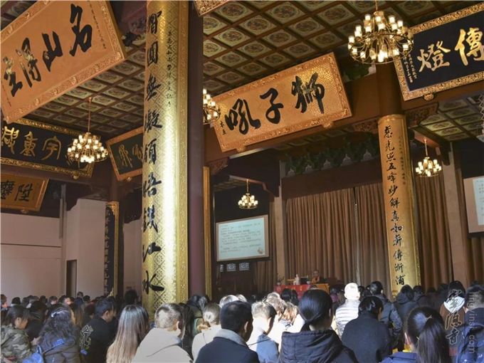 2019年12月7日,佛光普照,阳光灿烂。杭州灵隐寺直指堂再开周末讲经法筵。杭州佛学院能一法师受大众礼请,为信众及游客开示《观世音菩萨普门品》的殊胜法意,与会大众欢喜信受。