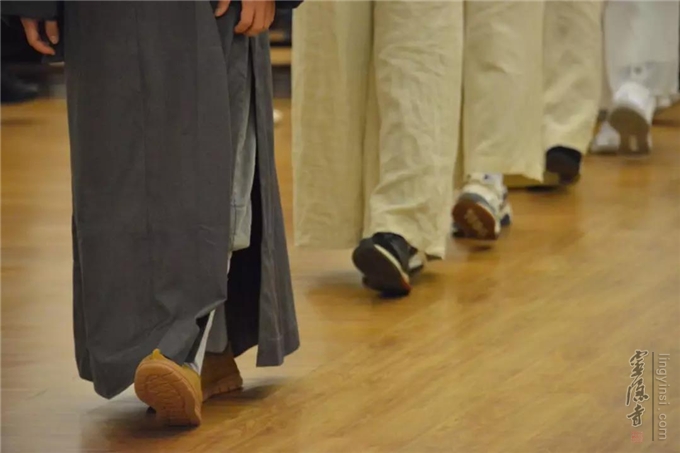 学员们每天晚上在禅堂跟随戒法法师学习禅修,深入体悟禅文化,将禅的哲理融入习茶中。