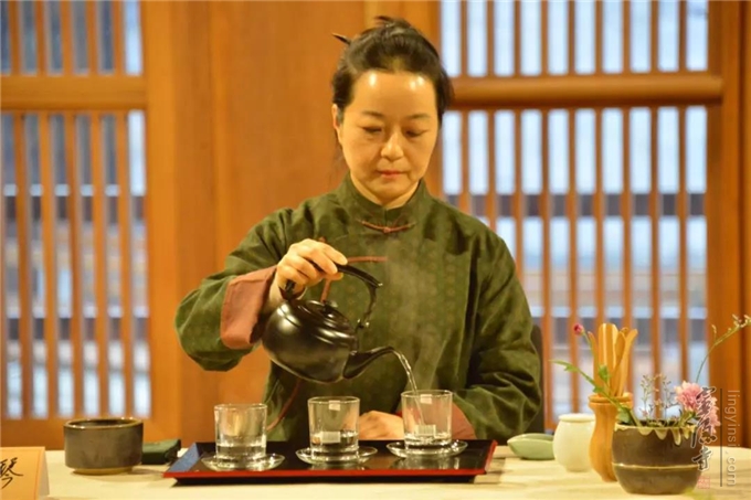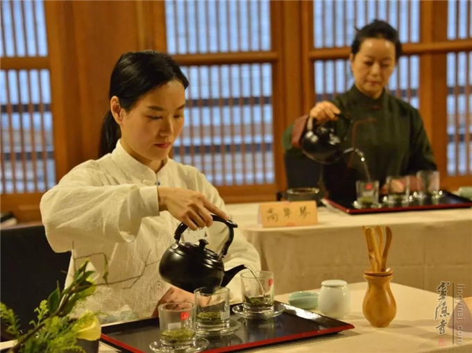夜幕降临,伴随着悠扬的古琴声,杭州灵隐寺第二期"禅茶三日"研学班的结业茶会在云中轩启幕。