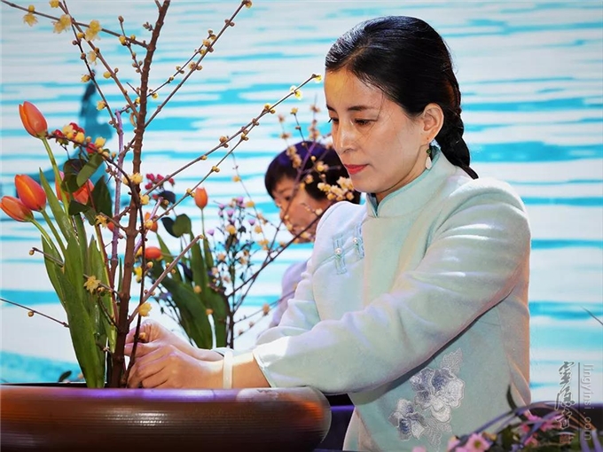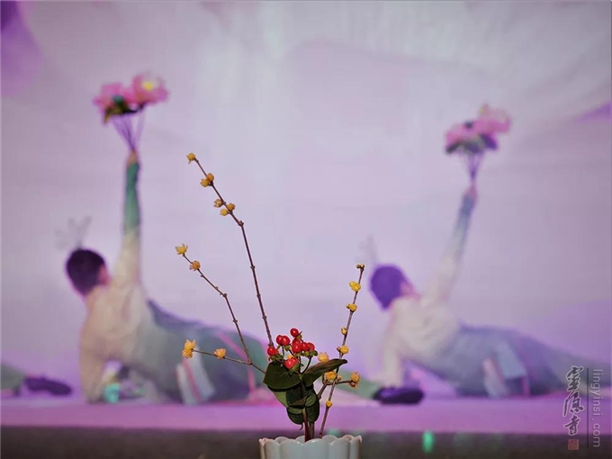 以一方绿意,将香花供养;刚柔相济之美,在呼吸招式之间,同归自然之和谐。讲解组、周日正念组、花道组合作表演《云水禅心》。