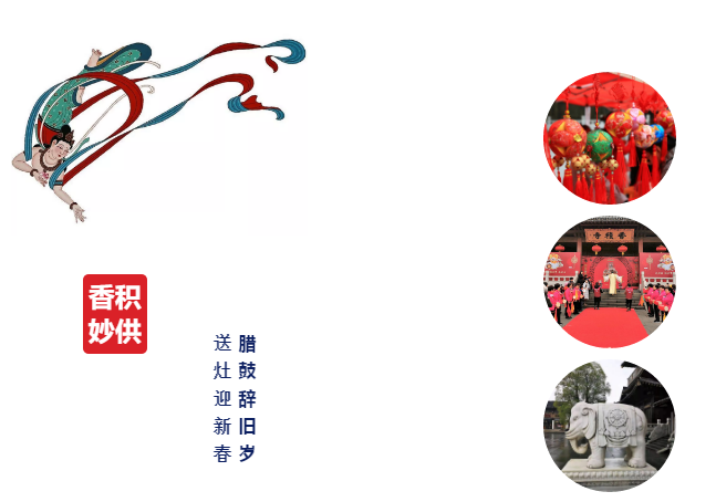 腊月二十三是监斋菩萨的圣诞,香积寺作为国内唯一主殿供奉监斋菩萨的寺院,上午在寺院内举行了迎新传供祈福活动。"香积寺祭灶习俗"在2019年成功入选了第七批拱墅区非物质文化遗产代表性项目名录。