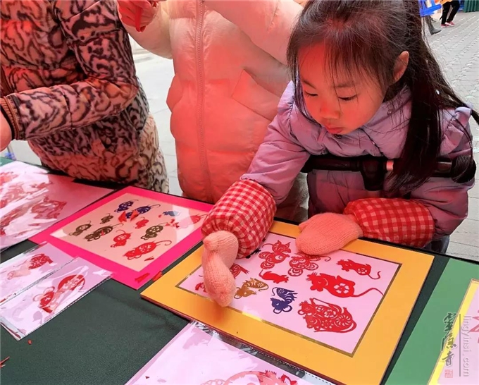 活动现场,雕版印刷年画、景泰蓝画制作、剪窗花、盘衍纸等非遗观赏体验项目人气爆棚,不少放了寒假的孩子争相上手体验一番。