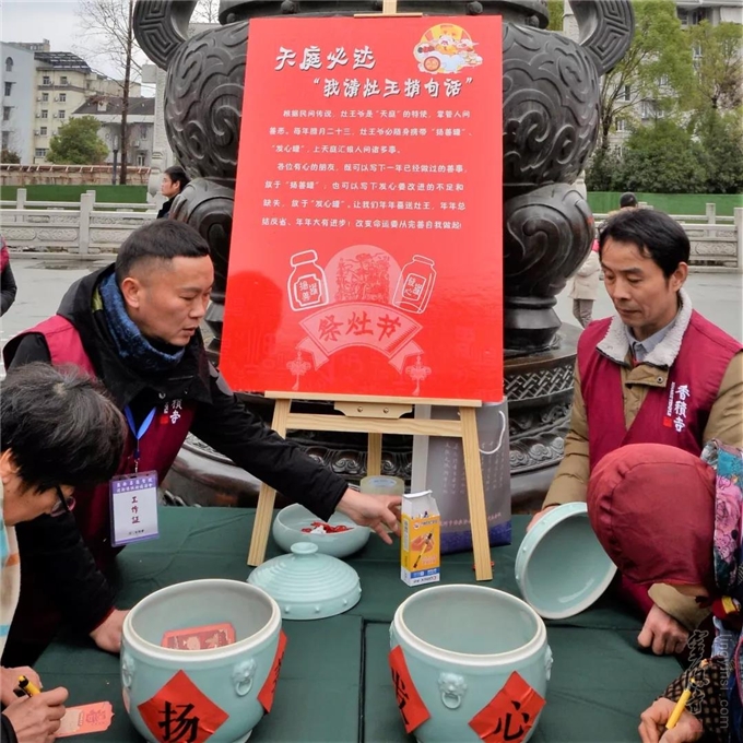 2020年1月17日下午,由浙江云林书院、杭州香积寺、湖墅街道联合举办的"腊鼓辞旧岁·送灶迎新春"民俗文化活动在拱墅区香积寺广场拉开帷幕,给运河畔带来了浓浓年味儿。