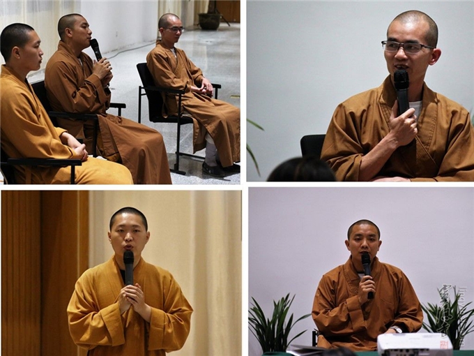 智忠法师、慧传法师、隆增法师等三位法师,详细解答学员提出的问题。法师开导学员说,学佛首先是发心,然后需要亲近善知识,按次第串习熏修。