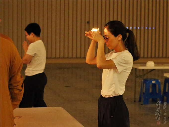 晚上21时,供灯佛事将共修活动推向高潮。人人点亮手中一盏灯,同时点亮了心中慈悲和智慧的明灯。