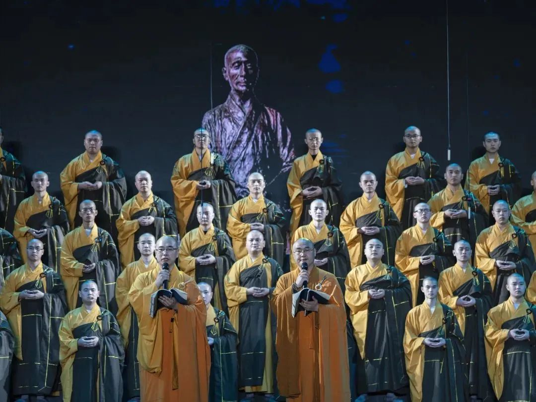 ▲灵隐寺僧众演出配乐诗朗诵《向弘一法师致敬》