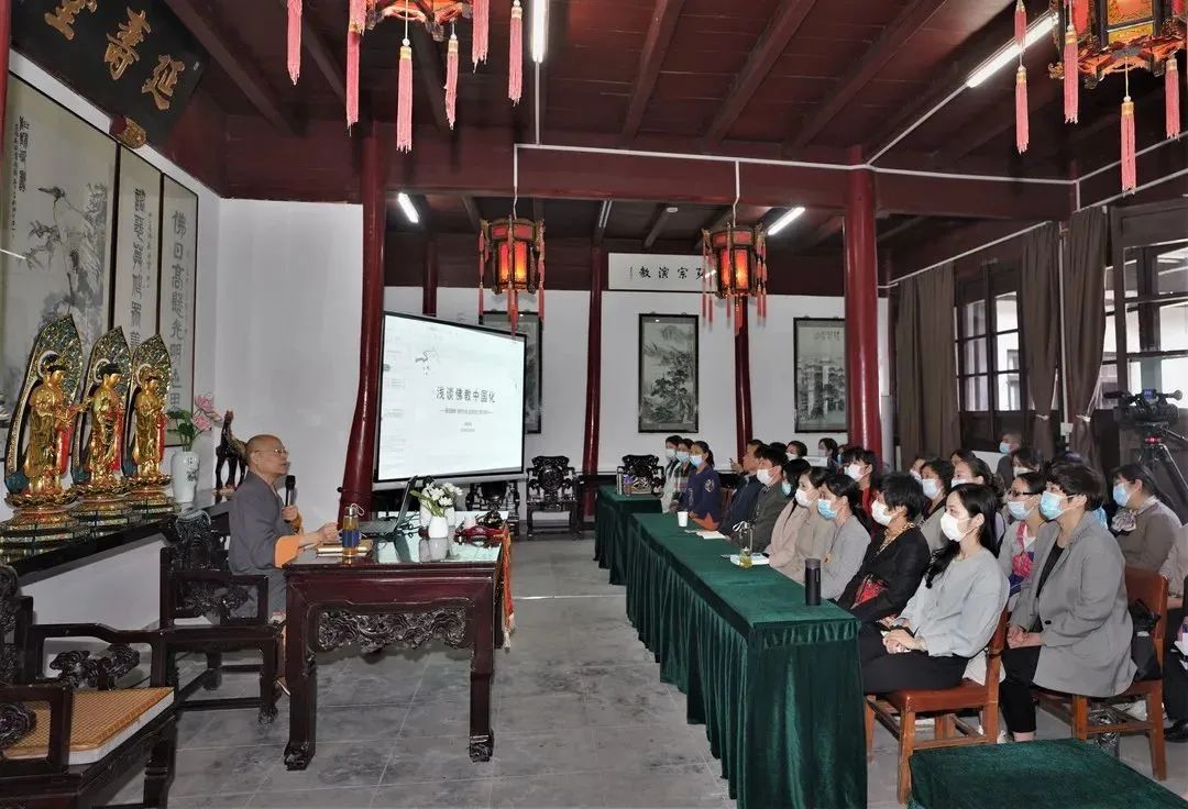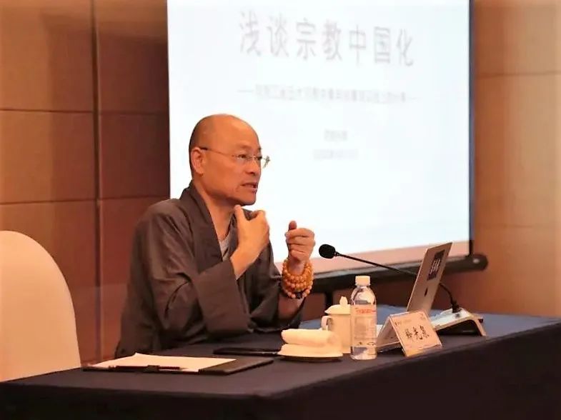 10月23日,浙江省佛教协会副会长、杭州灵隐寺方丈光泉法师莅临浙江省佛教协会“觉苑讲堂”,作题为《浅谈佛教中国化》的讲座。光泉法师以“奉公守法——佛教界要积极践行法治化、如法如律——佛教界要自觉抵制商业化、与时俱进——不断推进当代佛教中国化”为出发点,详细讲述了古代、近代历史中的佛教中国化案例,并对当代佛教如何坚持中国化方向进行了展望。