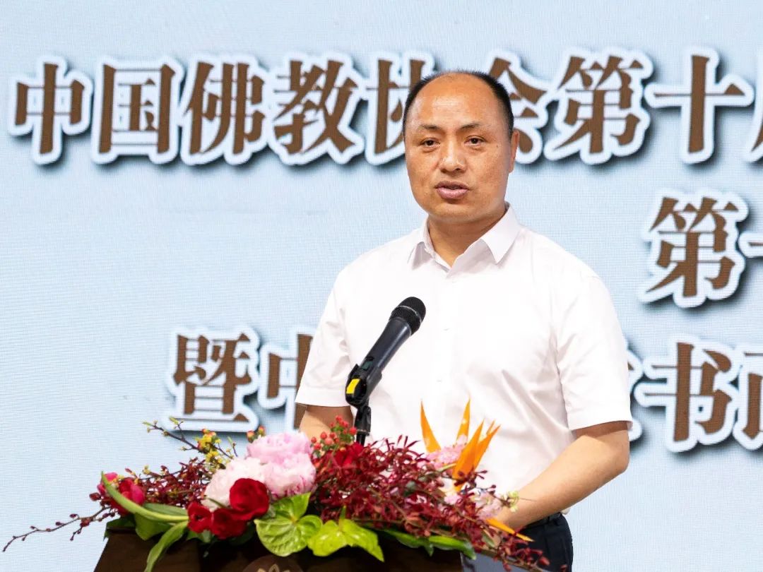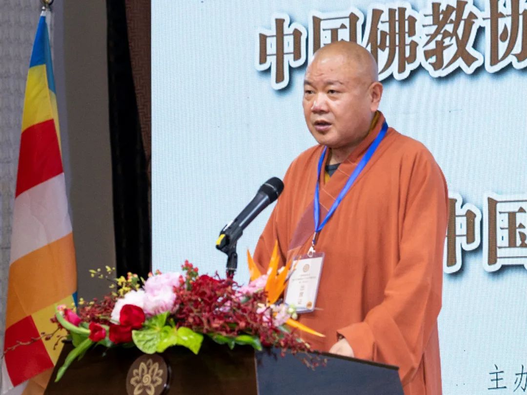 ▲中国佛教协会驻会副会长宗性法师主持会议