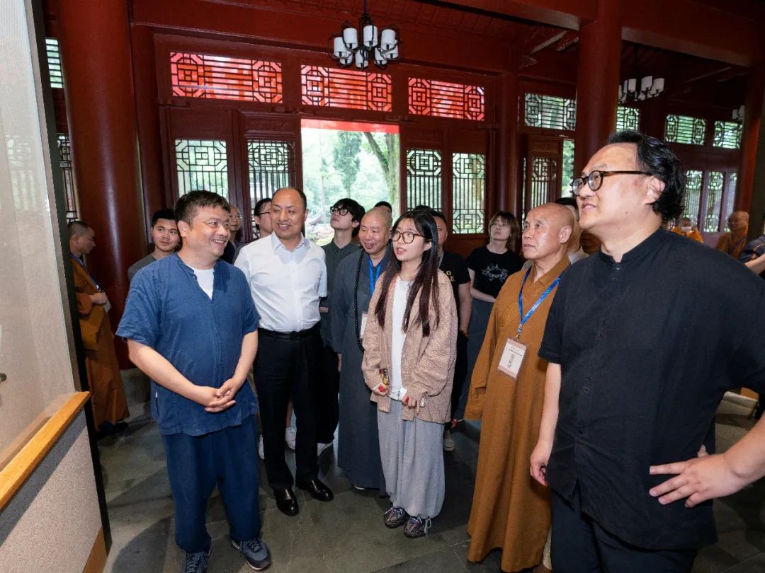 开幕式结束后,与会代表在永福寺梵籁堂前合影留念,并参观了“资严峰下——林海钟师生写生展”。之后各位领导和嘉宾赴灵隐寺参加了杭州市佛教协会为庆祝建党一百周年举办的“沧桑百年·中国梦——杭州佛教书画展”开幕式。