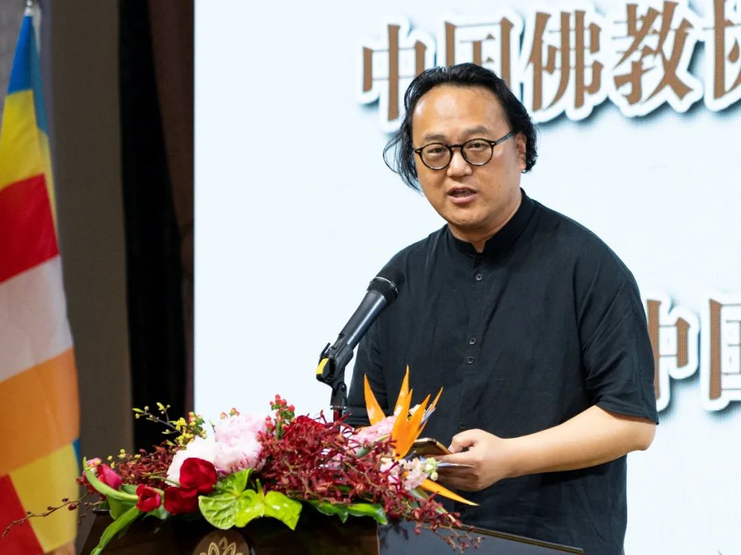 高世名在致辞中从艺术史的角度回顾了艺术与佛教的因缘。他说,东汉以来,佛教的兴起与发展对我国的艺术史产生了深远的影响。从怀素到牧溪再到四僧,禅林之中的名家巨匠枚不胜举。两宋以后,佛学更是成为了中国艺术史上重要的文化基因和精神食粮。中国美术学院与佛学渊源甚深,中国美术学院的丰子恺先生、徐梵澄先生和朱谦之先生,都和佛教有殊胜的因缘。高世名表示,佛教和艺术都需要“情意直观,理事相应”,他坦言自己从佛学的修持法门中受益良多,艺术创作过程中的许多灵感就来自于佛教。