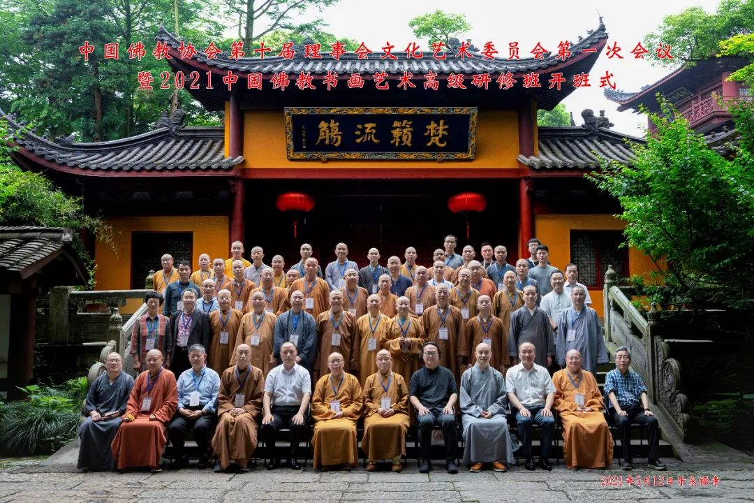 2021年5月12日上午,中国佛教协会第十届理事会文化艺术委员会第一次会议暨 2021 佛教书画高级研修班开幕仪式在中国佛教书画艺术交流基地(杭州永福寺)举行。
