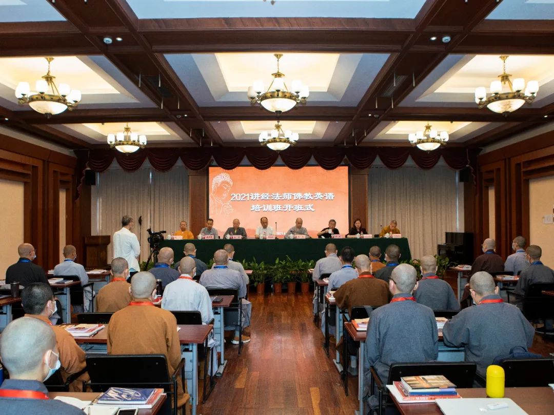 2021年6月10日上午,由中国佛教协会主办,杭州市佛教协会协办,中国佛教讲经交流基地和杭州灵隐寺共同承办的“2021讲经法师佛教英语培训班”在杭州灵隐寺开班。