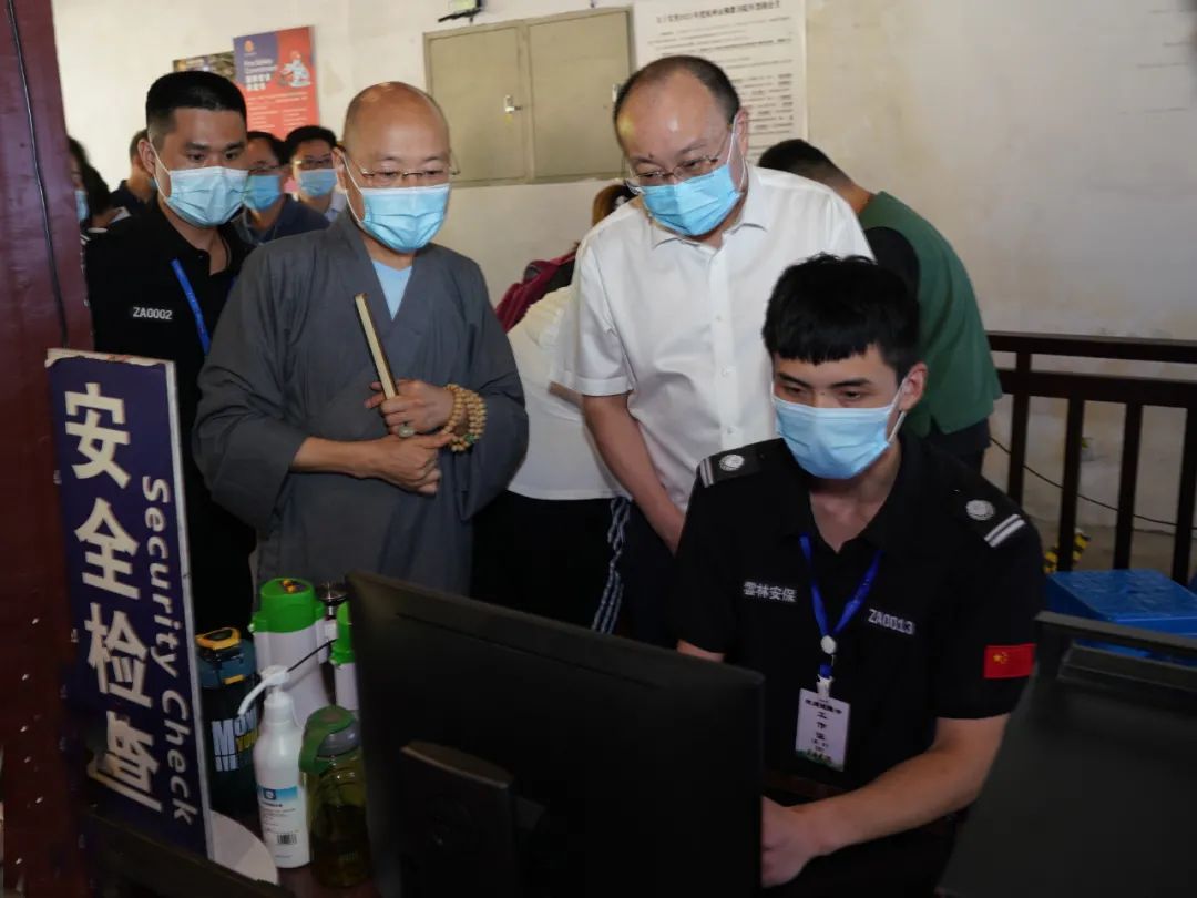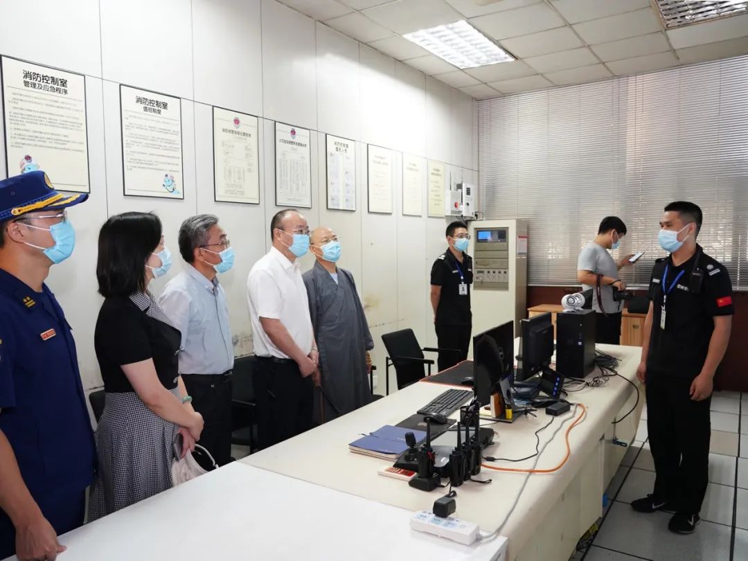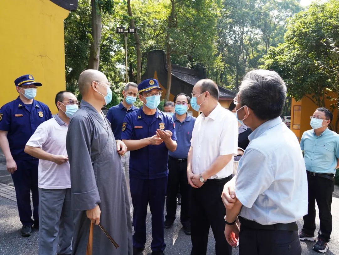 丁狄刚副市长一行在灵隐寺方丈光泉法师等的陪同下,先后实地查看了灵隐寺安全消防监控系统、厨房安全设施和疫情防控措施等。
