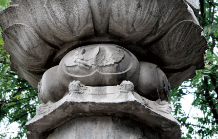 经幢上的勾栏,是浙江省所见最早勾栏的实物例证之一,具有重要文物价值,经幢上的雕刻也极具艺术价值。底层须弥座上的金刚力士浮雕像,怒目圆睁,形态生动;华盖上的四个伎乐飞天神采各异,飘然翩跹。唐代经幢至今已逾1100余年,能存世实属不易。