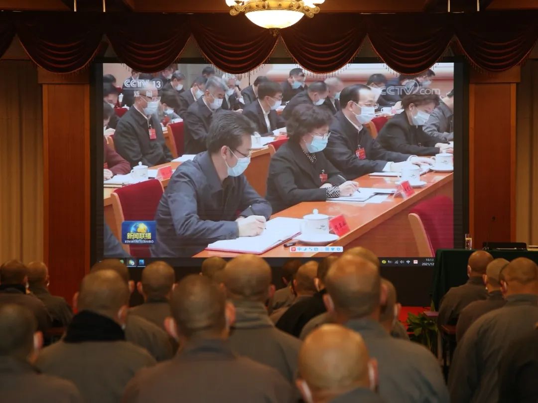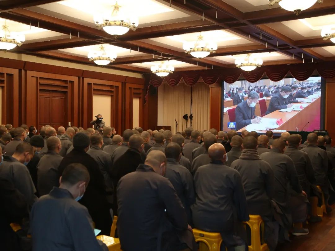 12月5日晚,杭州灵隐寺在华严阁召开全寺僧众大会,集体学习全国宗教工作会议精神。灵隐寺方丈光泉法师主持会议。