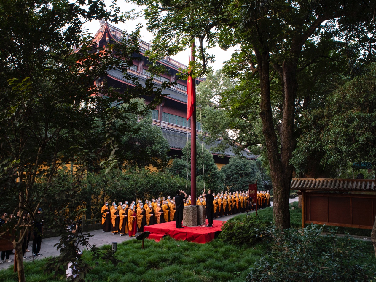 7月1日清晨,杭州灵隐寺举行庆祝中国共产党成立100周年升国旗仪式。杭州灵隐寺方丈光泉大和尚率两序大众着装整齐,排班肃立,齐唱国歌,注视着国旗在灵隐寺上空冉冉升起,满怀崇敬之情献上对伟大的党、伟大的祖国的美好祝福,共同祈愿国家繁荣昌盛,人民安居乐业。