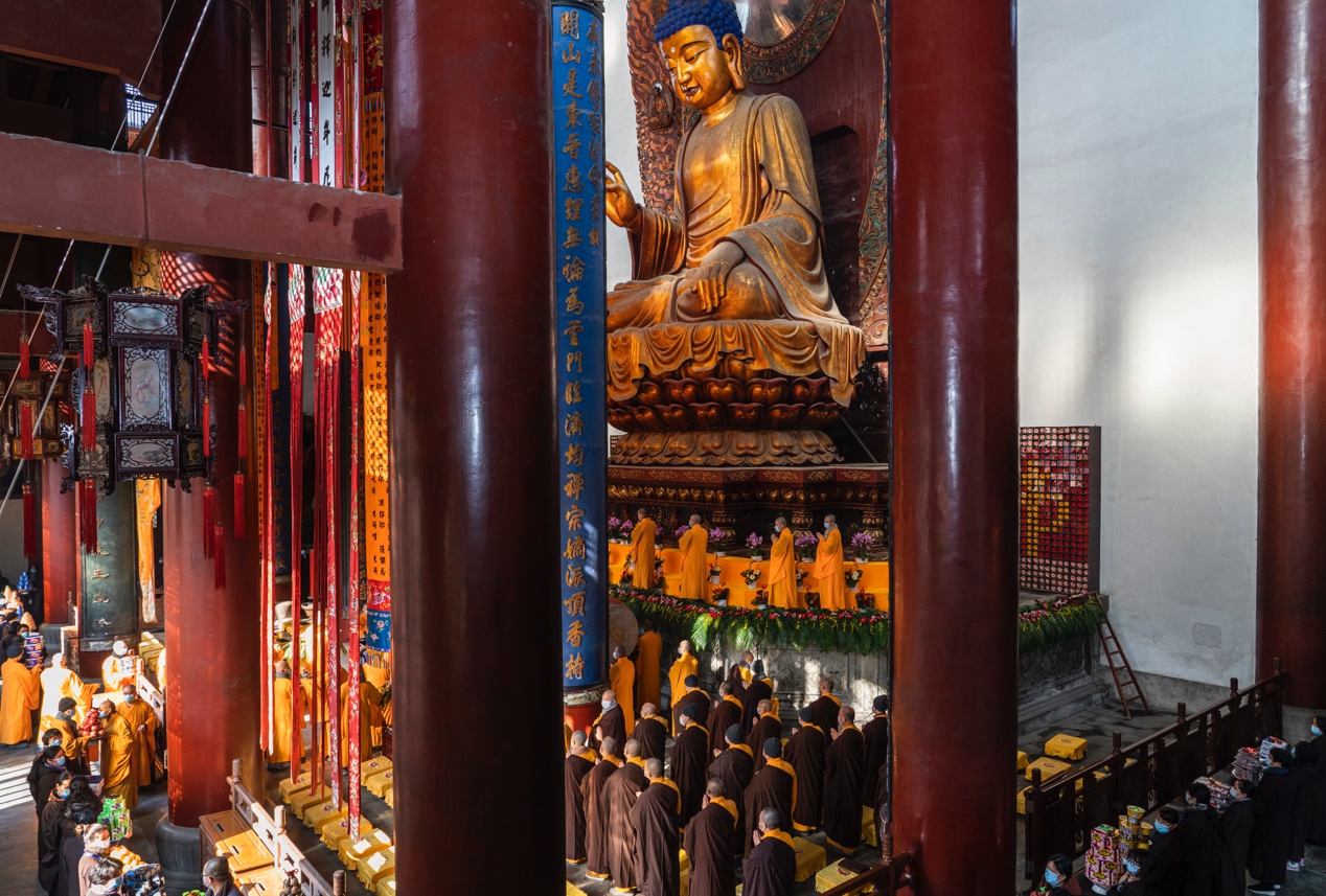 1月20日,庚子腊月初八,本师释迦牟尼佛成道纪念日,杭州灵隐寺谨依祖制于大雄宝殿祝圣,感恩释尊示现成道、说法度众,祈愿佛日增辉、法轮常转、疫情消遁、世界和平。