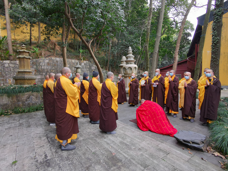 12月21日,辛丑冬月十八,冬至之日,杭州灵隐寺举行辛丑冬至上供礼祖佛事,灵隐寺常住法师分组前往月恒堂(祖师殿)、理公塔、祖师塔院、普同塔等处上供礼祖,并于涵莲堂代祭诸姓祖先。大众以香花灯涂果和悠扬梵呗恭敬供养祖师,虔诚礼拜祖塔,追思忆念灵隐历代住持及天下弘宗演教诸善知识建寺安僧、传灯续焰的深恩厚德,藉此激励后学的精进办道之心。