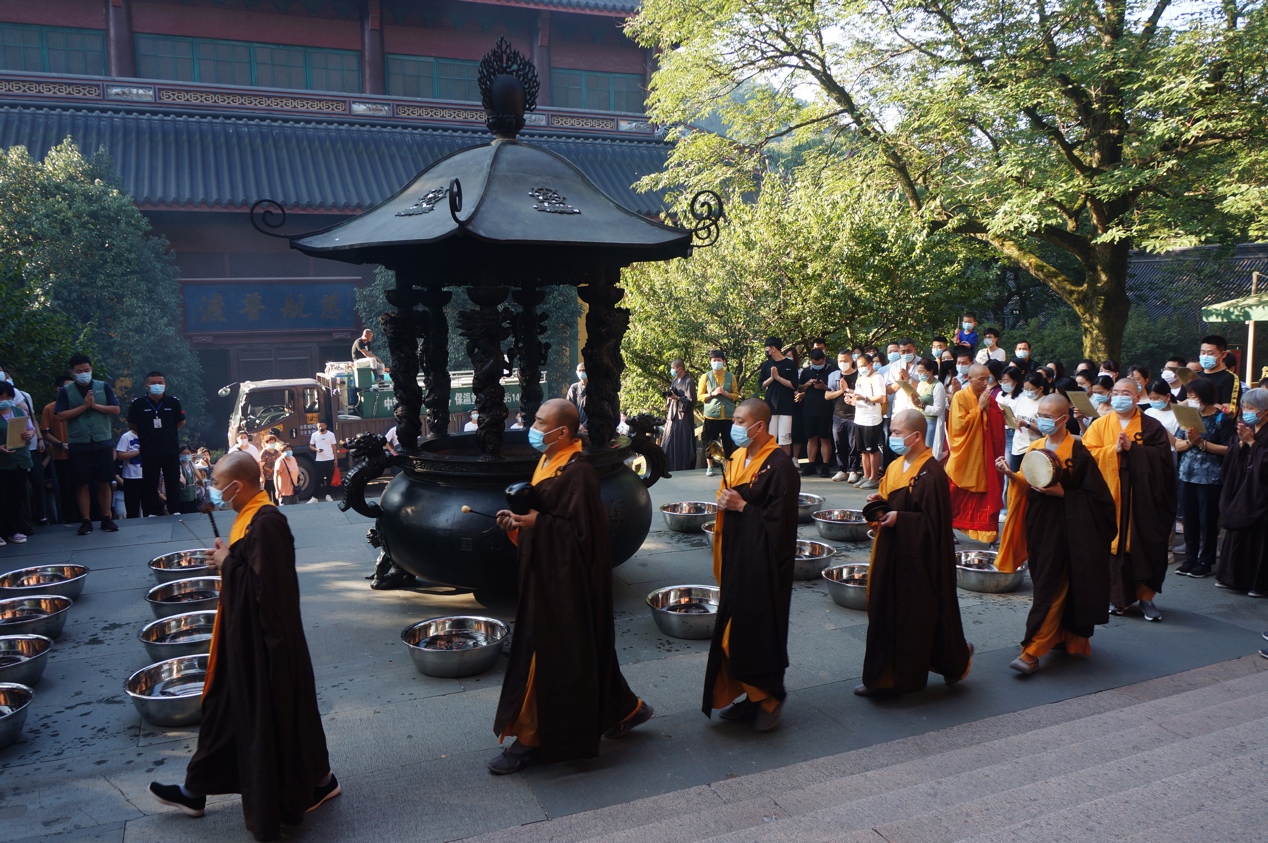 8月22日,辛丑七月十五,恭逢盂兰盆节,亦称佛欢喜日、僧自恣日、报父母恩日,杭州灵隐寺依照佛教仪规,举行盂兰盆供、诵经供斋、瑜伽焰口等法事活动,藉此供佛斋僧功德之力,拔济累世父母冤亲,利益冥阳两界众生。