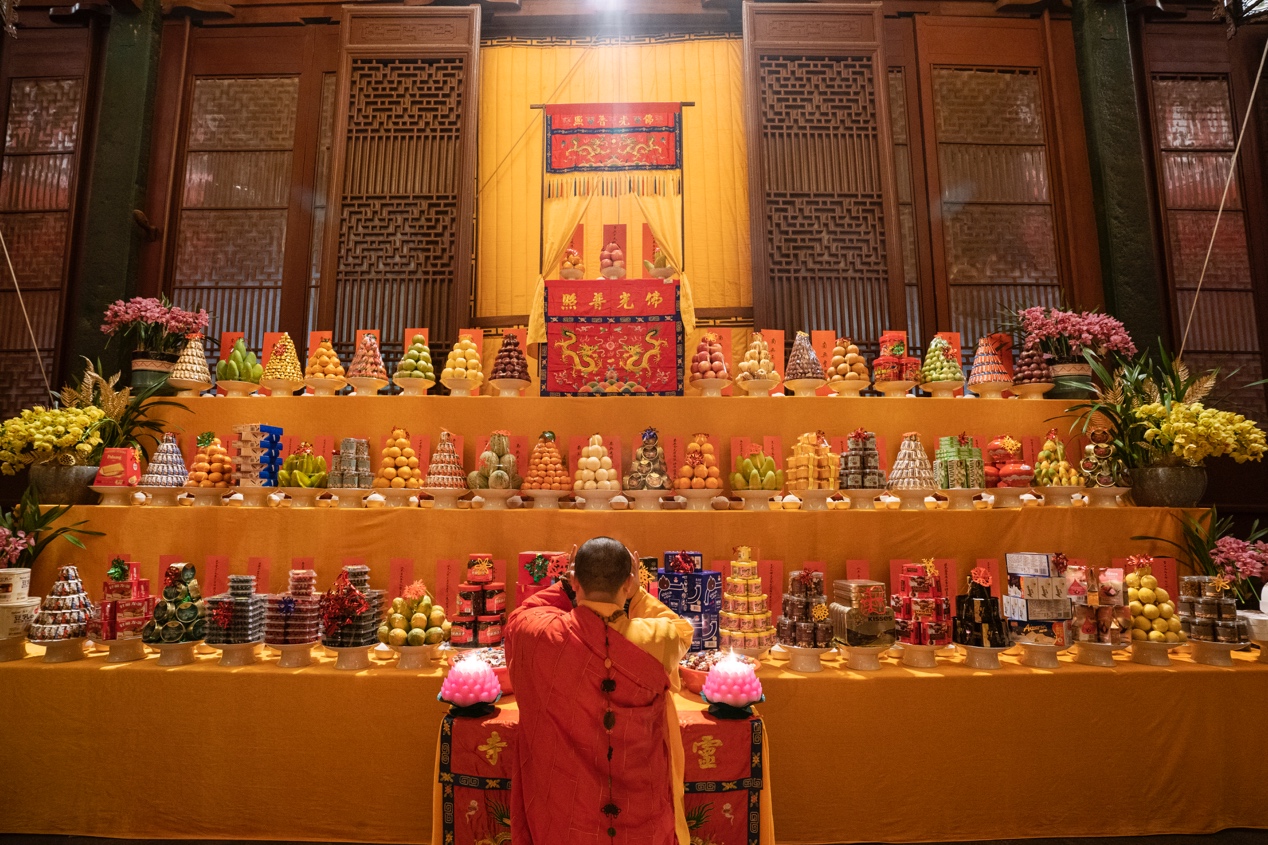 2月20日,辛丑正月初九,灵隐寺举行辛丑新春祈福斋天法会。两序大众云集大雄宝殿,虔诚设供焚香,诵经礼拜,祈愿国泰民安,风调雨顺。