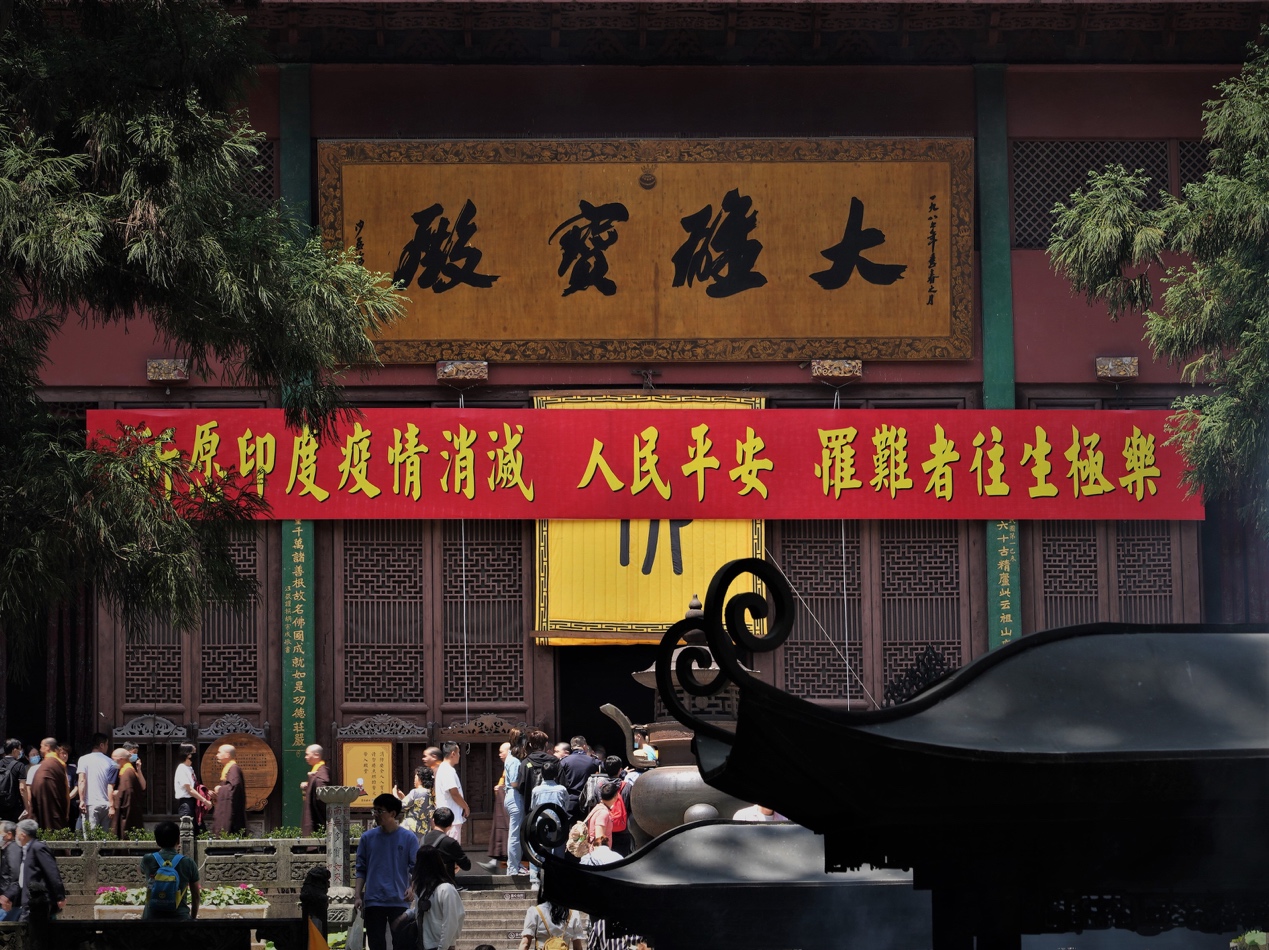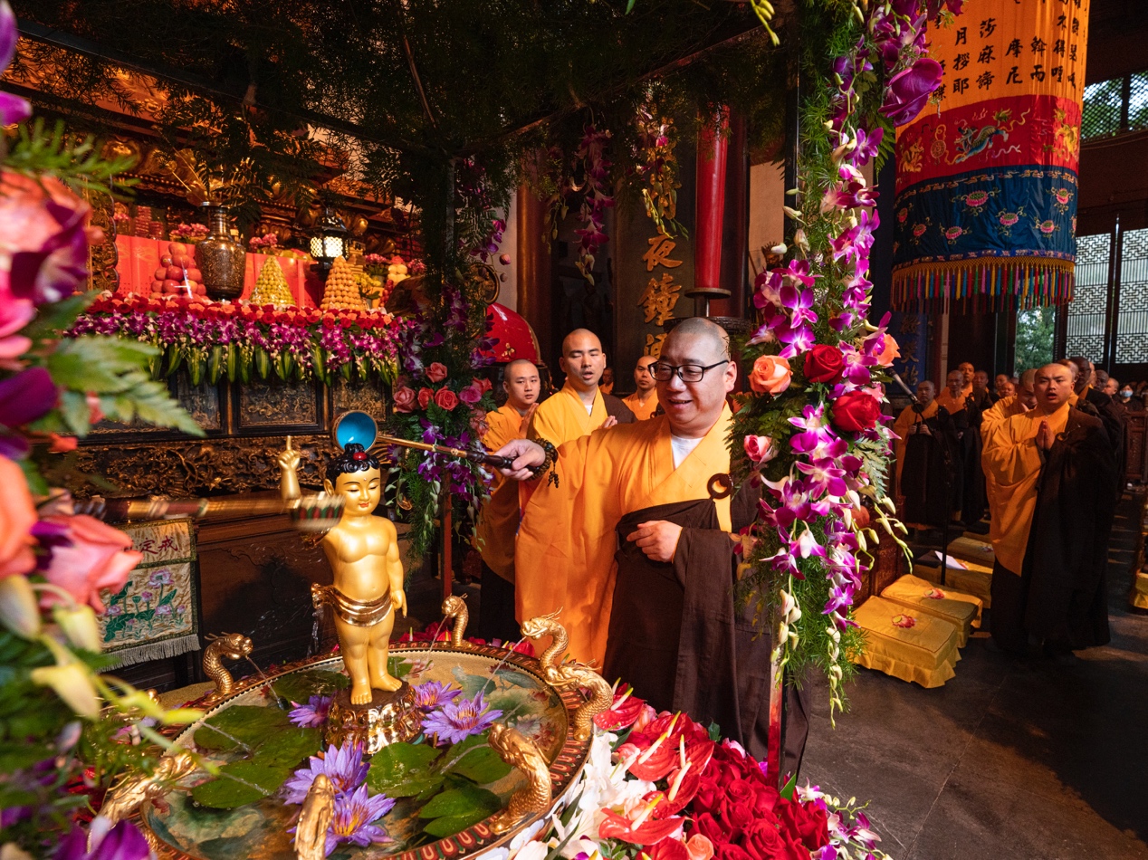 5月19日,辛丑四月初八,释迦牟尼佛圣诞日,杭州灵隐寺于清晨举行辛丑佛诞浴佛法会,大众同声称念“南无本师释迦牟尼佛”圣号,依次以香汤灌沐太子圣像,共祈三宝加被,正法久住,世界和平,人民安乐。