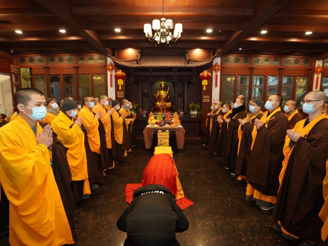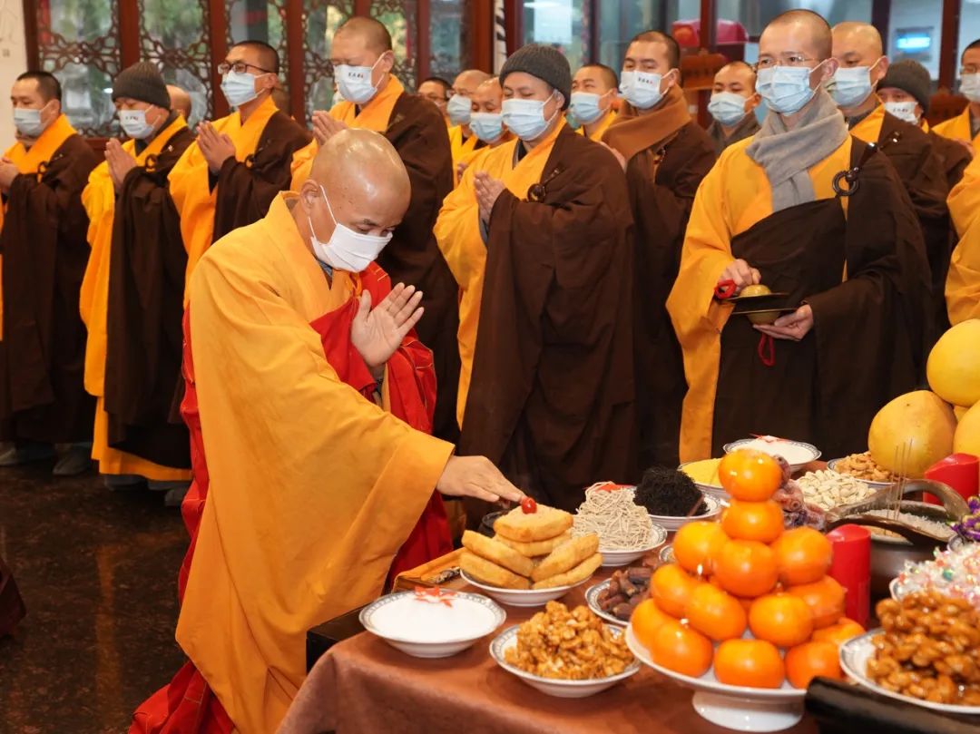1月25日,辛丑年农历腊月廿三,适逢监斋菩萨圣诞。下午16:00,杭州灵隐寺两序僧众云集十方苑,讽诵经咒,同声礼赞监斋菩萨。