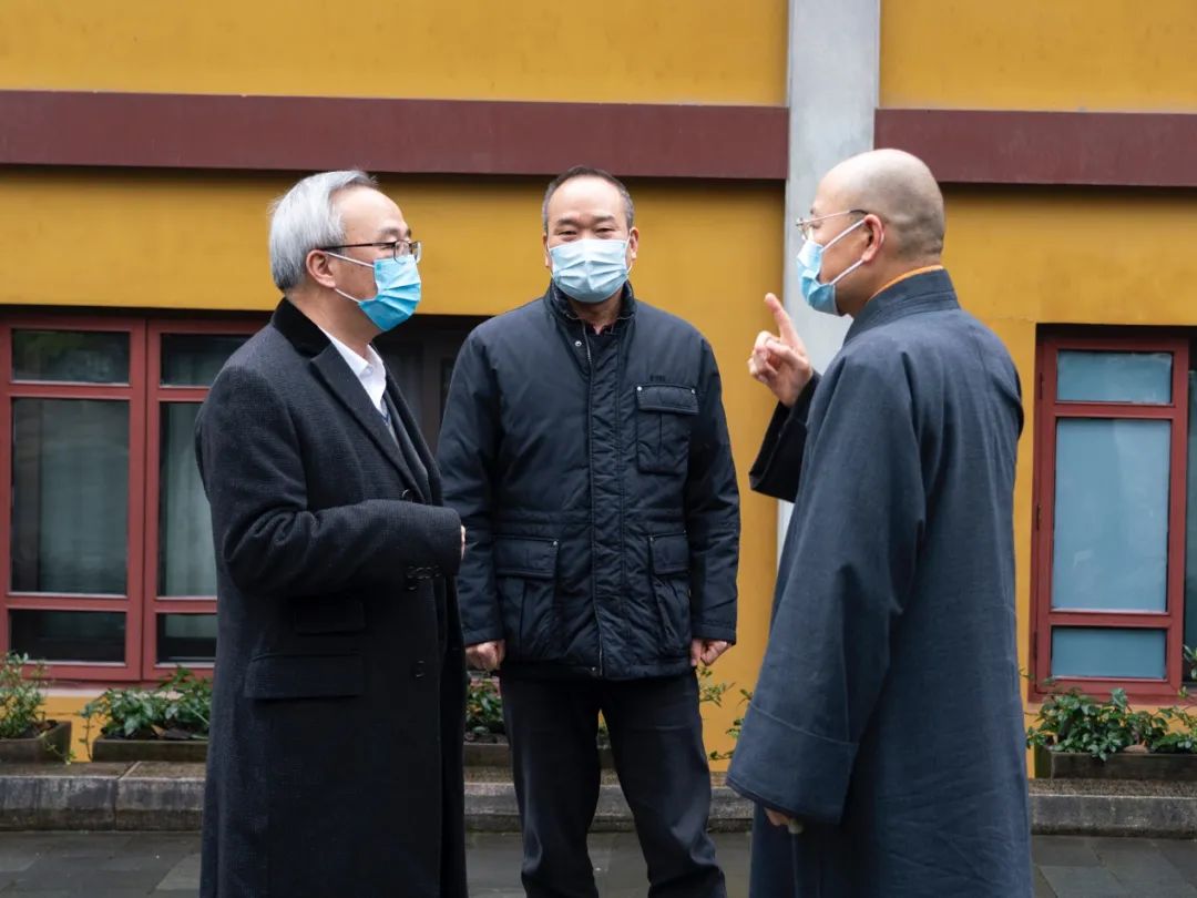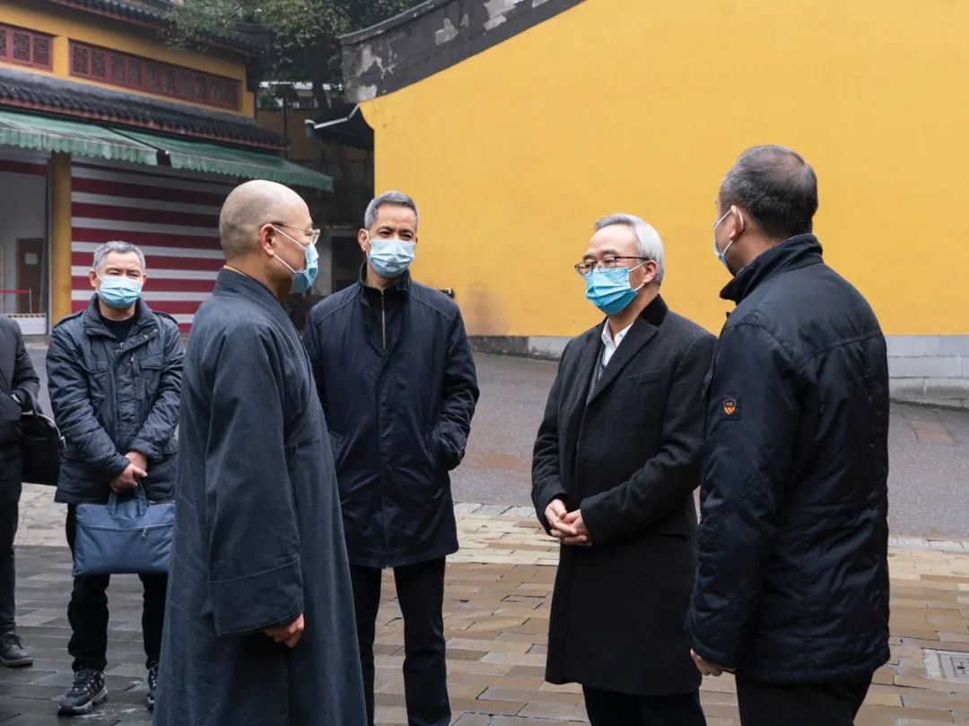 2022年1月25日上午,市委常委、统战部部长陈新华,在市委统战部副部长、市民宗局局长邵根松的陪同下,到灵隐寺检查春节安全和疫情防控等工作落实情况。