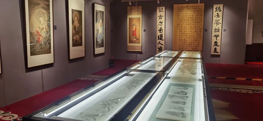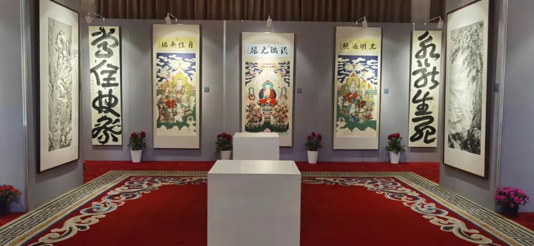 本次展览由杭州佛学院艺术院师生共同参与,展出作品笔绕金石味,墨生清静花,点画之间波涛迭起,烟云漫散,充分展示了师生们深厚的佛教修养和高妙的艺术造诣,是杭州佛教界多年来持续推进佛教艺术研究、不断丰富创作题材的集中体现。