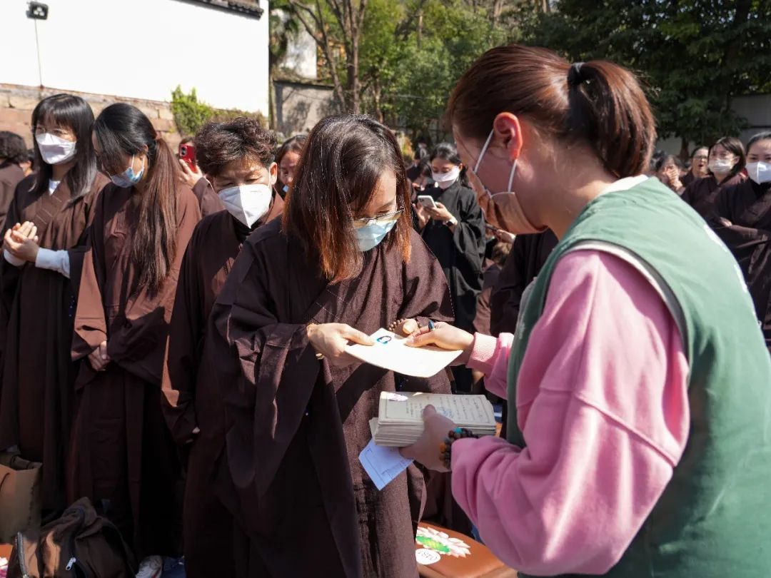 2023年3月10日,癸卯年农历二月十九,恭逢观世音菩萨圣诞,杭州灵隐寺举行皈依法会,礼请灵隐寺方丈光泉大和尚为信众传授三皈依。
