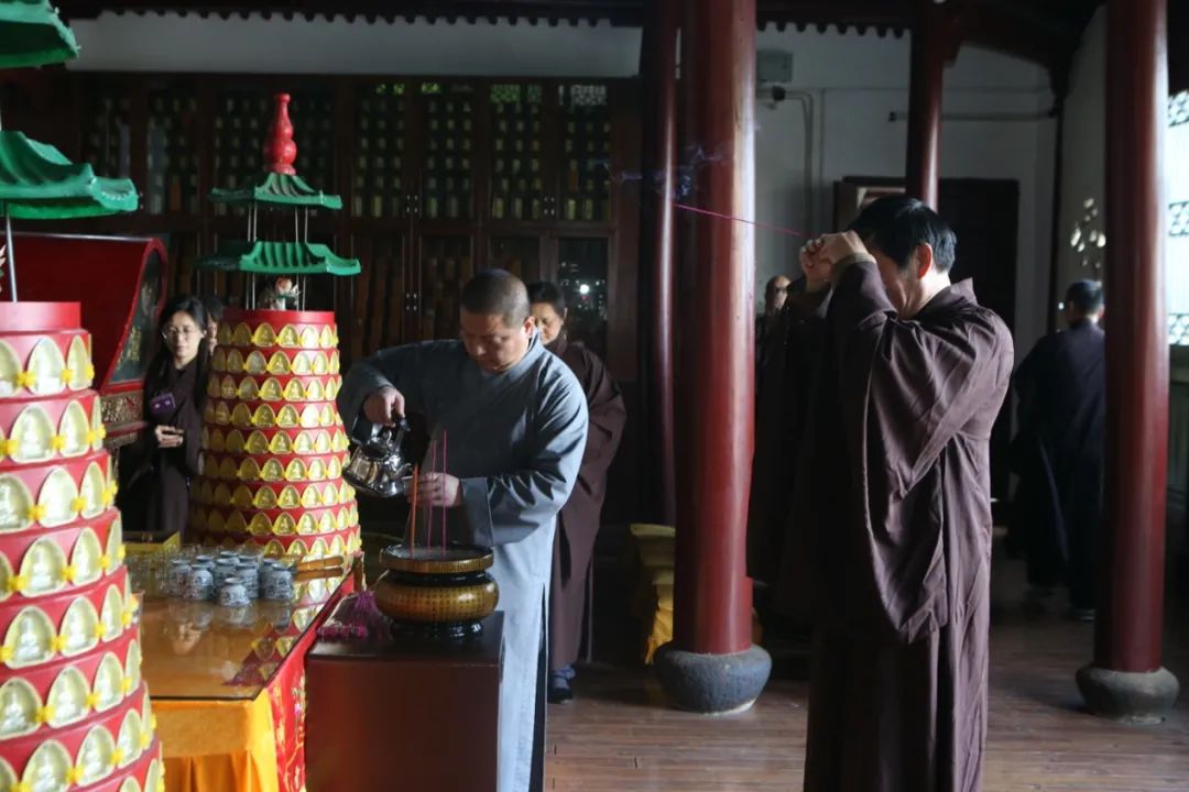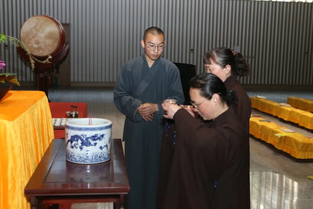 4月10日,杭州灵隐寺举办的2023年第一期皈依弟子回堂修学活动圆满结束。此次回堂活动为期4天,为使大家万缘放下,专心修行,所有学员全程禁用通讯与娱乐工具,以至诚清净之心体验了佛门晨钟暮鼓的生活。7日晚上,参加回堂的各位学员在法诚法师的带领下学习了礼佛、问讯等佛门礼仪及寺院生活的基本规矩,为接下来的四天中与常住法师们一起上殿过堂、朝暮课诵做准备。8日早斋过堂后,学员们在法师的带领下,分组前往各个殿堂敬香、燃灯、供水。接下来的几天,大家都用供养诸佛菩萨来开启一天的修学活动,以至诚恭敬之心祈求三宝加持、龙天护佑,法界众生离苦得乐,同证菩提。