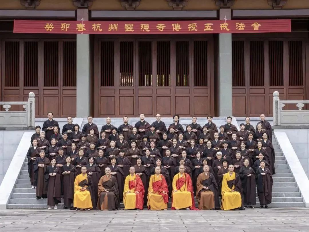 2023年5月5日,癸卯春杭州灵隐寺传授五戒法会圆满。此次传戒为期5天,5月5日上午,灵隐寺方丈光泉大和尚为三宝弟子正授五戒。
