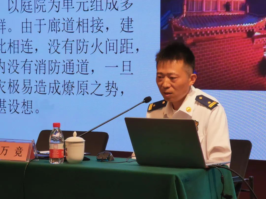 ▲西湖景区消防救援大队大队长万竞作消防安全知识专题培训万竞围绕“对法的认识、消防安全管理规定、单位自主管理平台”等三个方面向大家详细讲授了国家和地方的消防法律法规和规章制度,重点讲解了如何做好消防责任人和消防管理人的具体要求,并结合宗教场所的实际情况分析了场所火灾隐患风险点和如何消除火灾隐患,现场还播放了典型火灾案例,根据案例进行针对性解读。