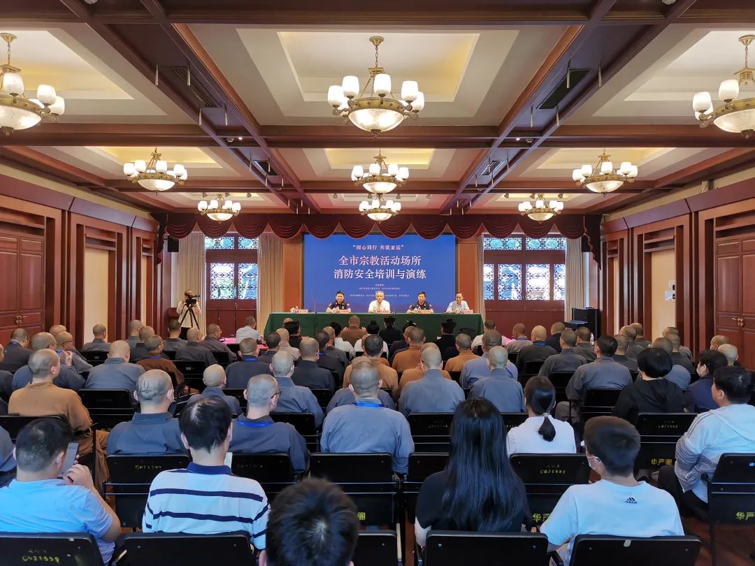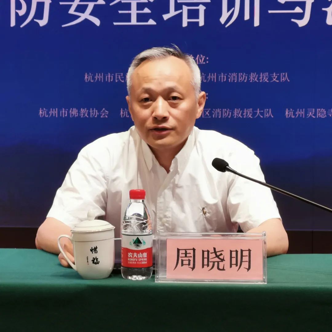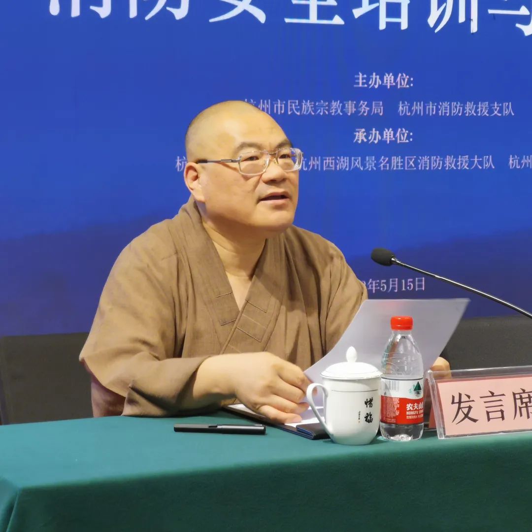 为贯彻落实省市委关于平安创建的工作部署,进一步推进全省安全生产隐患大排查大整治行动和全市消防安全“七个一”活动,高水平推进平安宗教活动场所建设,增强宗教界消防安全责任意识,培训一批消防安全“明白人”,筑牢消防安全防线,为杭州亚运会胜利召开营造良好的社会环境,5月15日,由市民宗局、市消防救援支队主办,市佛协、景区消防大队协办,灵隐寺承办的杭州市宗教活动场所消防安全培训与应急演练活动在灵隐寺举行。市民宗局党组成员、二级巡视员周晓明,市民宗局宗教处处长舒修明,市消防救援支队副支队长王宇,市消防救援支队防火监督处处长冯俊峰,市各宗教团体、基督教青年会、女青年会主要负责人参加活动。▲省佛协副会长、市佛协会长月真法师代表市宗教团体发言月真法师表示,近年来,在省市有关部门的关心支持下,全市宗教界深入贯彻落实省、市宗教工作会议决策部署,积极开展消防安全知识宣传和学习,推动“智慧消防”建设,提升安全防范能力,取得了积极成效。并将以此次活动为契机,依托“智慧消防系统”,将“智防”与“人防”有机结合,增强全市宗教活动场所消防安全防控水平,筑牢杭州宗教界的安全防线,以高度的责任感、使命感协力开启“平安杭州,助力亚运”新篇章。周晓明在讲话中指出,此次活动为了进一步统一宗教界的思想和行动,进一步推进“同心同行·共筑亚运”提质创优行动,高水平建设平安宗教活动场所。周晓明要求,一是要提高思想认识,强化平安护航亚运会的责任担当。各宗教团体和场所要认真学习贯彻习近平总书记关于亚运会的重要指示精神和省委市委的决策部署,深刻领会杭州举办亚运会、亚残运会的重大意义,进一步提高政治站位。二是要强化主体责任,全面落实除险保安各项要求。各宗教团体要进一步强化消防安全责任意识,扛起宗教团体和场所第一责任人责任,加强安全工作,强化安全措施和保障,防范化解安全隐患,确保杭州市宗教领域安全稳定。三是要坚持问题导向,筑牢宗教领域安全稳定防线。各宗教团体要经常督促检查宗教场所贯彻落实宗教政策法规和除险保安工作情况,切实筑牢宗教领域安全稳定防线,为杭州亚运会胜利举办贡献力量。