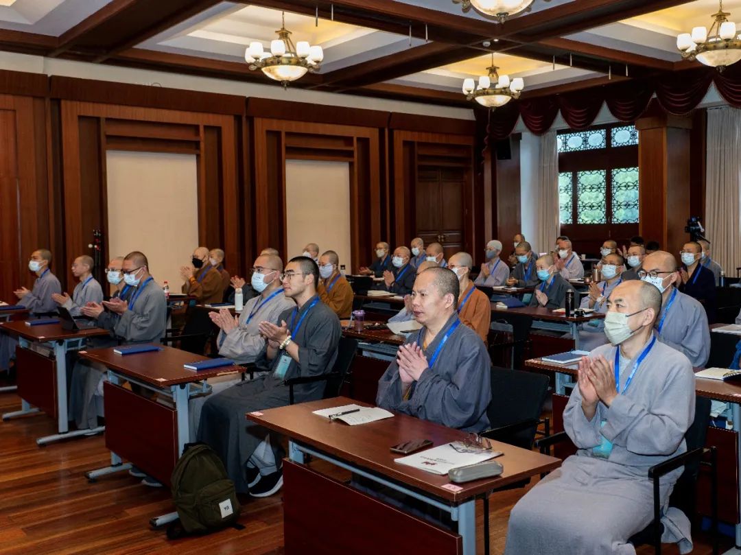 6月7日上午,由中国佛教协会主办,杭州市佛教协会协办,中国佛教讲经交流基地和杭州灵隐寺共同承办的“2023讲经法师佛教英语培训班”在杭州灵隐寺开班。浙江省民宗委党组成员、副主任钟新章,杭州市民宗局党组成员、二级巡视员周晓明,中国佛教讲经交流基地主任、灵隐寺方丈光泉法师,中国佛教协会教务部主任、中国佛教讲经交流基地副主任长顺法师,浙江省佛教协会秘书长金幸祥,杭州市佛教协会副会长念顺法师,杭州市佛教协会秘书长胡胜军,杭州市佛教协会常务副秘书长邓安松出席开班式。来自全国20多个省市自治区的37位学员参加了开班式。