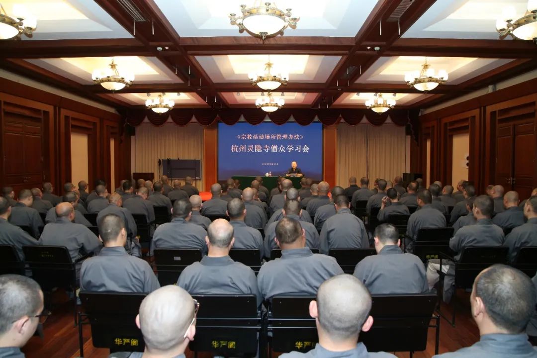 8月26日晚,杭州灵隐寺召开全寺僧众大会,在方丈光泉大和尚的带领下围绕《宗教活动场所管理办法》开展专题学习。