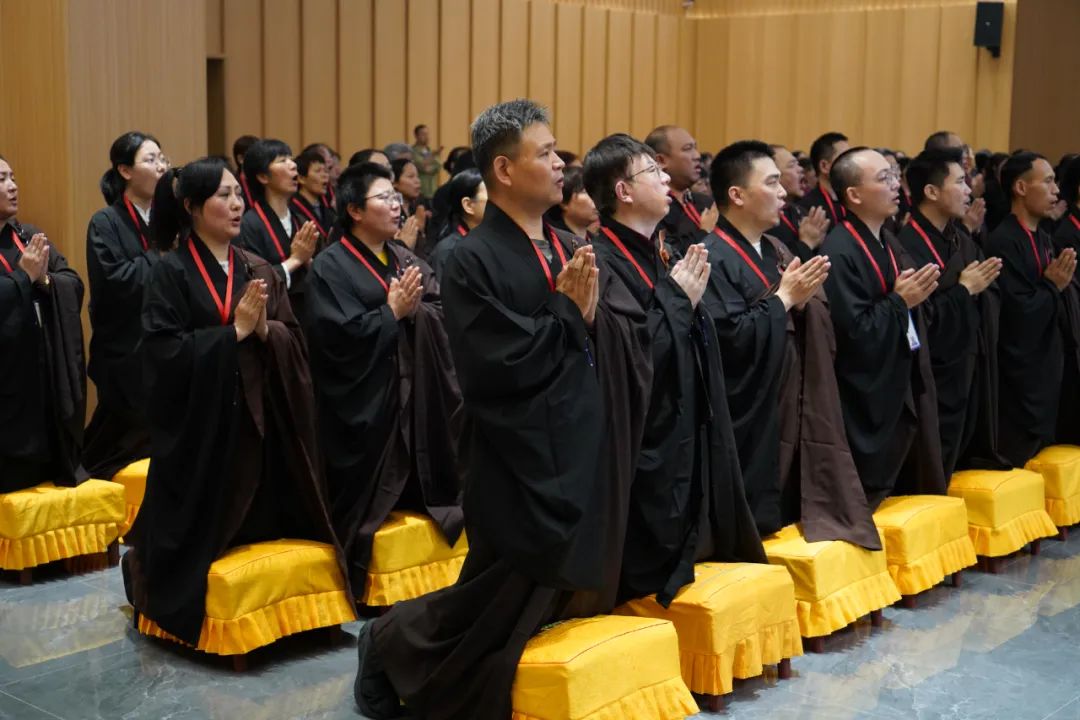 5月4日下午,迎请智光法师、戒法法师、慧传法师为三宝弟子传授五戒。法会现场庄严殊胜,仪式如法如律,受戒弟子衣装整肃,对面而立,在三宝前发下庄严有力的誓言,发愿尽形寿不杀生、不偷盗、不邪淫、不妄语、不饮酒。