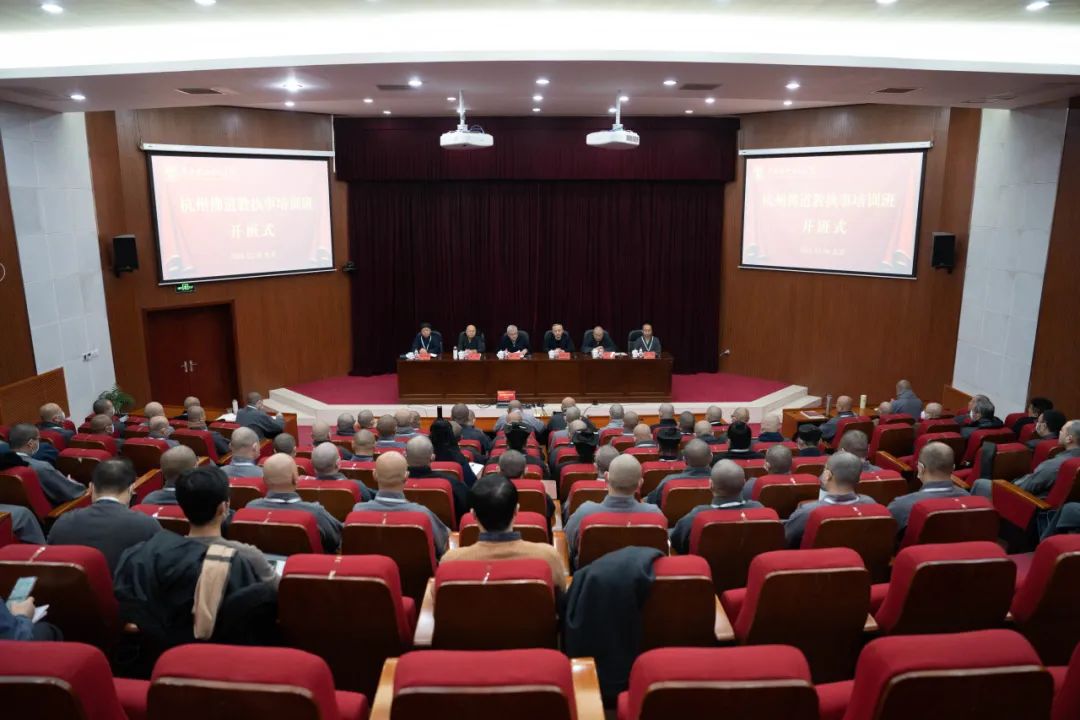 2023年12月4日,由杭州市佛教协会、杭州市道教协会主办,杭州灵隐寺承办的杭州佛道教执事培训班在中央社会主义学院隆重开班。此次培训班为期七天,精心组织培训课程,聘请中央社院、北大等多所高校、院校机构的专家教授授课,课程涵盖宗教政策法规解读、国际国内形势分析,并安排有中华优秀传统文化和佛教中国化专题讲座,内容专业丰富,形式生动多样。