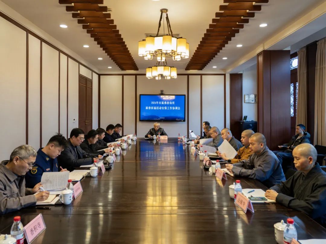 1月11日,杭州市民宗局春节期间市属佛教场所安保工作协调会在灵隐寺召开,西湖风景名胜区管委会宣统部、城管局、应急管理局、公安局、消防救援大队、灵隐管理处等有关部门及市佛协、市属佛教场所相关负责人参加会议。会议研究讨论了《春节期间市属重点宗教活动场所新春祈福活动安保工作方案》,明确了属地相关单位及市属佛教场所新春祈福活动职责分工,细化了各项安全保障措施和要求。